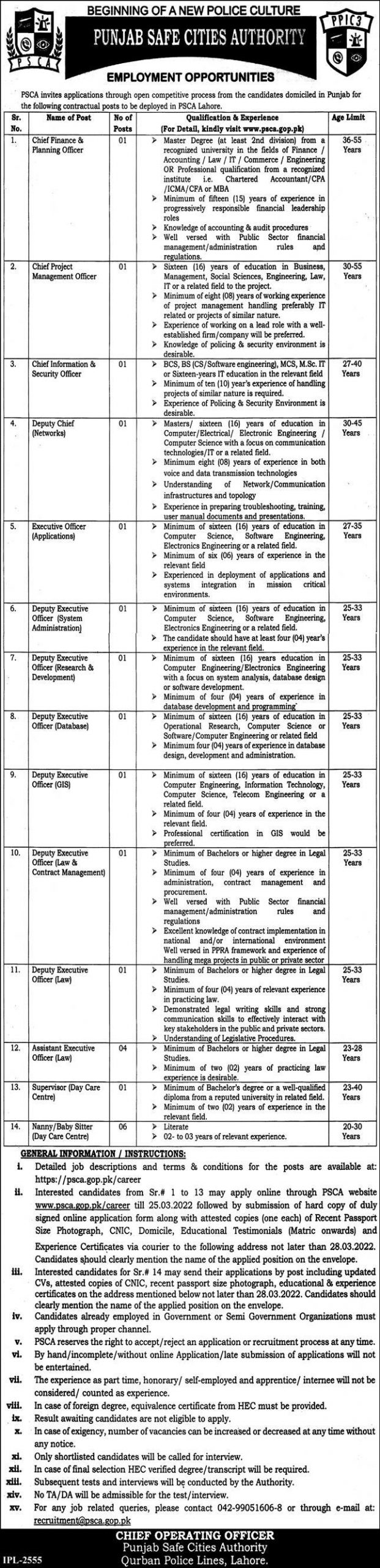 | Employment Opportunities - Punjab Safe Cities Authority | 26-10-2022 | 14-11-2022 | Advertisement | ||