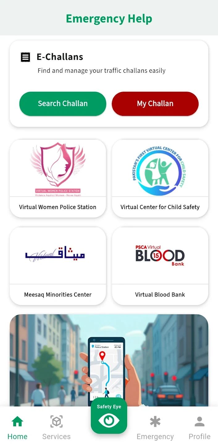 Citizens can locate current police station using GPS-based services. Through the Mera Pyara Services, users can report missing or found persons/children, helping families reconnect swiftly and effectively. The app also ensures quick access to various emergency service contacts, including Police-15, Rescue 1122, Motorway Police, and Punjab Highway Patrol.